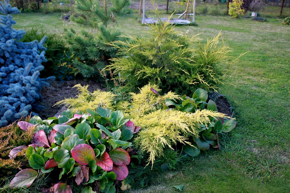 Нюансы сочетания растений в декоративных группах с деревьями и кустарниками хвойных пород: